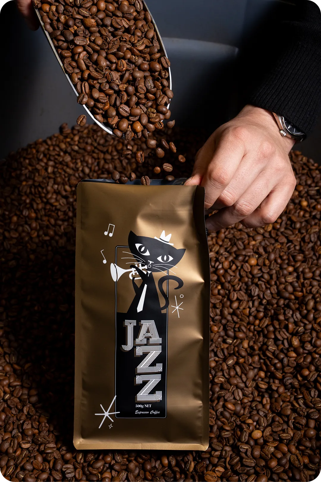 Jazz is smooth with clean taste notes and a sweet, intense profile that works well as espresso or milk coffee.